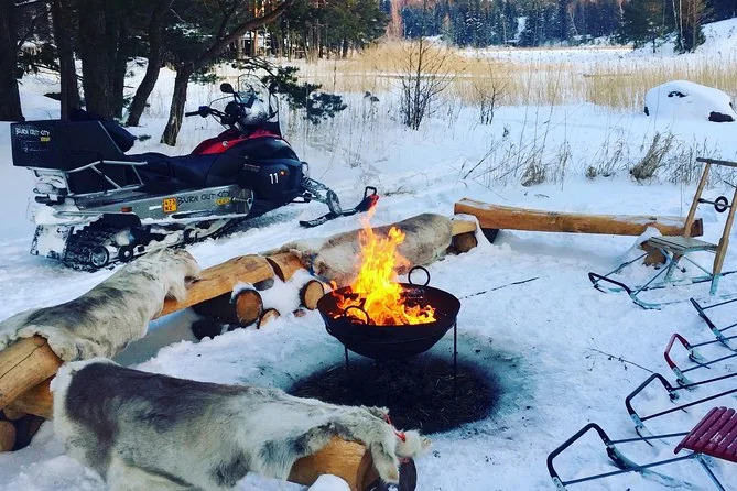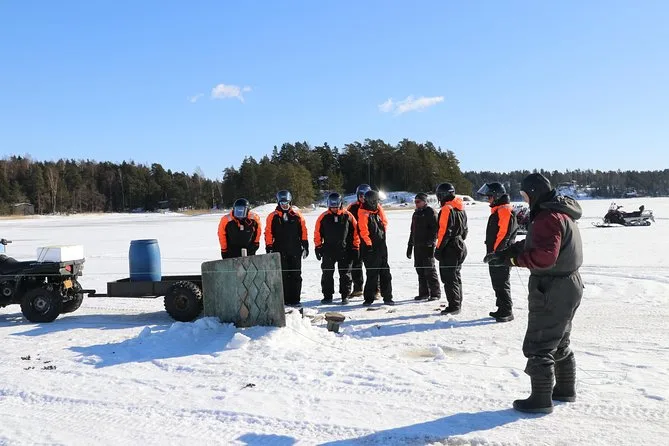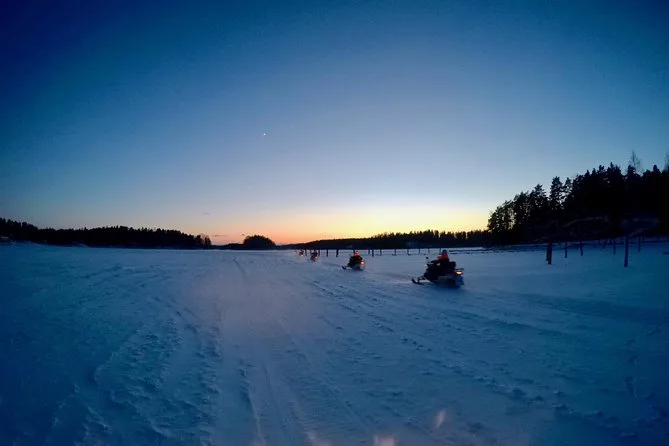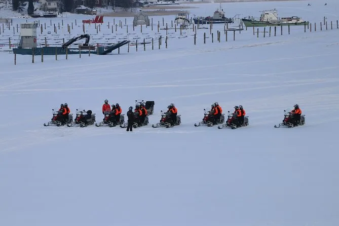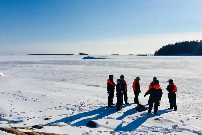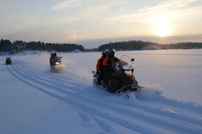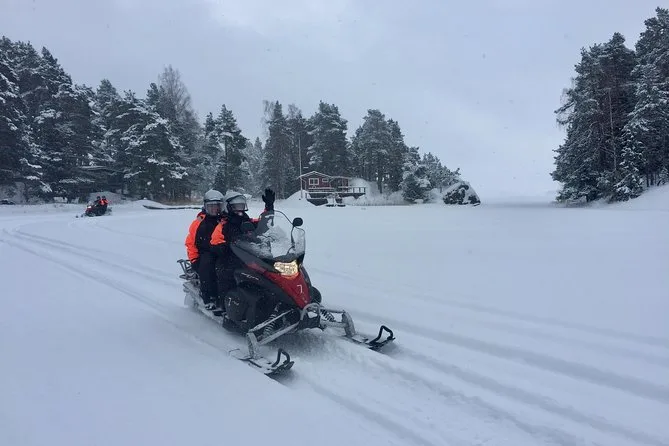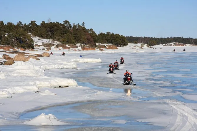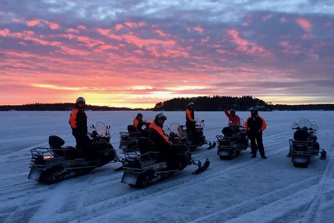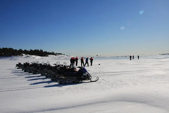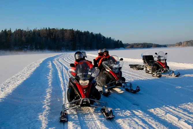 Your day includes pickup and drop-off from central Helsinki, all necessary winter gear (snowsuit, boots, gloves, balaclava, helmet), guidance from local experts throughout your 20-30 km snowmobile adventure across forest trails and frozen sea, plus a Finnish BBQ lunch with hot drinks before heading back to town together.