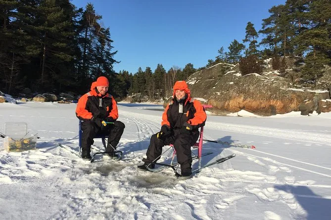 Lunch happened on an island — just a clearing with a campfire and benches carved from logs. The smell of grilling sausages mixed with pine needles and coffee from an old thermos. Someone tried ice fishing (I didn’t catch anything except cold fingers), while others took turns on these little kick sleds that looked like something from a winter cartoon. My toes thawed out by the fire, and for a minute everything felt very far from city life. The ride back was quieter; maybe everyone was tired or just soaking it all in. I still think about that view over the frozen bay — pale sun, endless white.