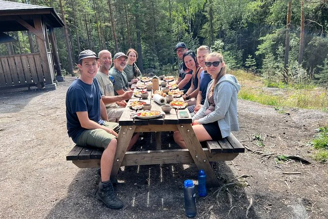 Your day includes group pickup at Kiasma Museum in central Helsinki, private transportation into Sipoonkorpi forest with a local guide leading an easy hike (6km total), all national park fees and taxes covered, a Finnish-style campfire lunch by a freshwater lake (let them know any dietary needs when booking), towel use for your traditional smoke sauna session—with plenty of time for swimming—and return transport back to Helsinki by early evening.