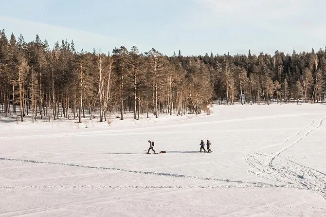 I didn’t expect walking on snowshoes to feel so… floaty? It’s not hard, but every step is soft and slow. We followed a frozen river for a while — the ice made these weird little popping sounds under the snow that made me nervous at first. Sanni said it’s normal this time of year. She told stories about growing up here; apparently her grandmother still makes birch bark tea when it gets really cold. I tried to imagine living somewhere where -30°C is just “a bit chilly.”