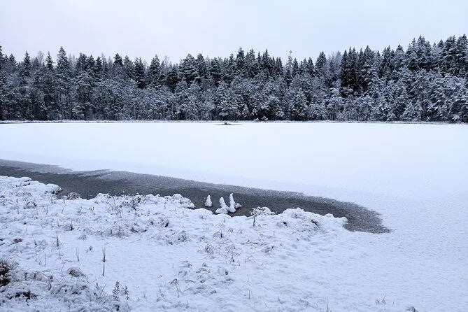 The best part? We stopped at this little laavu shelter by the water where Mika started a fire. He poured out more glögi (or blackcurrant syrup if you’re here in summer) and passed around biscuits that tasted faintly of cardamom. Lunch was homemade salmon soup with dense rye bread—simple but somehow perfect after all that walking. My hands were cold but my face felt warm from laughing at someone’s attempt to sit on a log bench without sliding off (it’s harder than it looks). If you want a day trip to Nuuksio from Helsinki that feels real—not rushed or touristy—this is it.