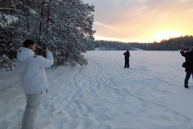 Your day includes private transportation from Helsinki to Nuuksio and back, plenty of snacks like Finnish biscuits and candies along the trail, seasonal drinks such as glögi or blackcurrant syrup, plus a hearty homemade Finnish soup served with traditional bread—all shared around a lakeside fire before heading home again.