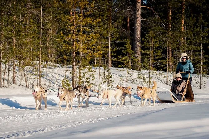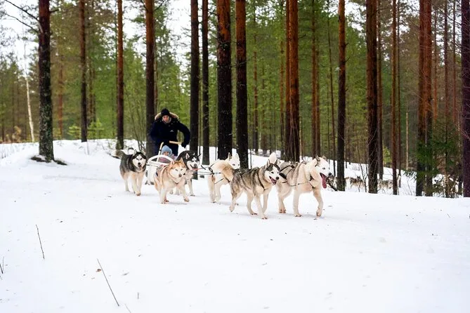 The self-driven trek covers 5 to 8 kilometers through Lapland forests.