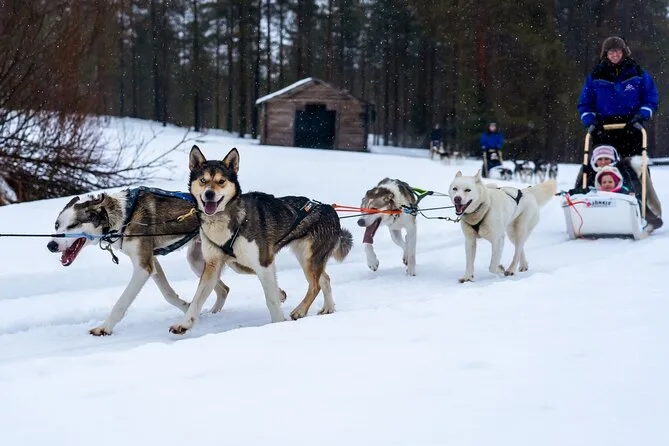 Your day includes hotel pickup and drop-off in Rovaniemi, guiding throughout by local experts, all fees and taxes covered, plus a self-driven 5–8 km trek with your own husky team. You’ll be kitted out with adult-sized winter overalls to stay warm before sharing a traditional Lapland barbecue lunch together at the farm before heading back homeward.