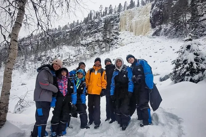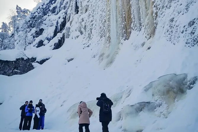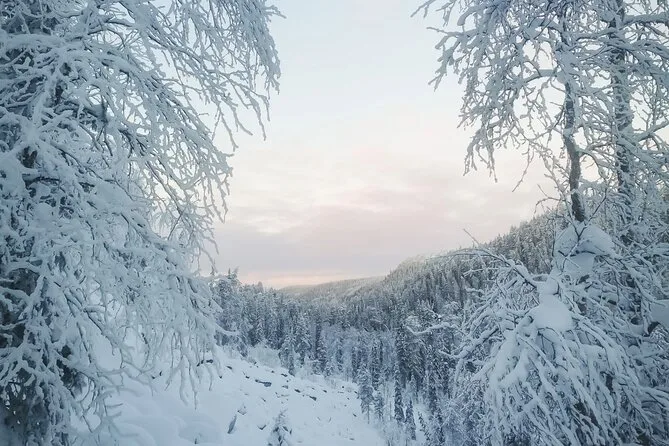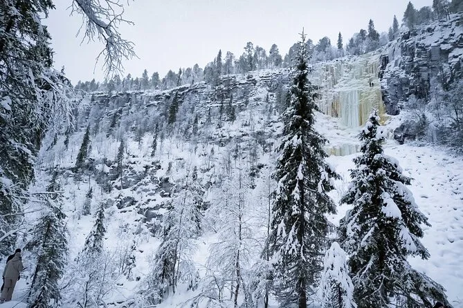 You’ll hike through snowy forest trails in Korouoma Canyon near Rovaniemi, see towering frozen waterfalls up close, and warm up beside an open fire with grilled sausages and hot drinks. With a local guide sharing Lapland stories along the way and hotel pickup included, this day trip is equal parts adventure and quiet magic.