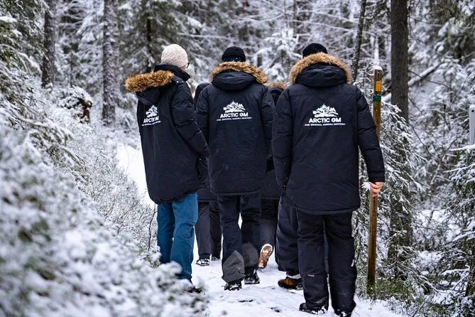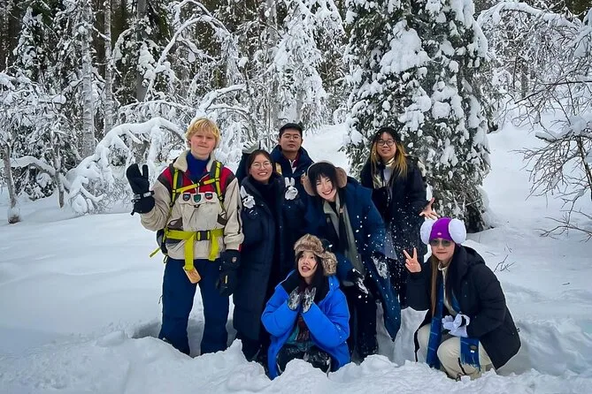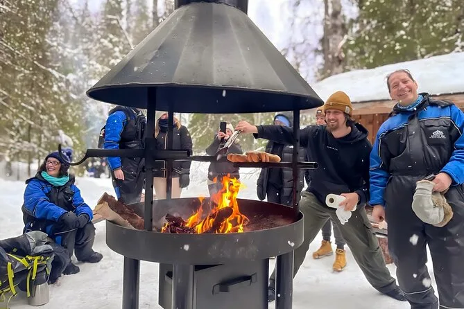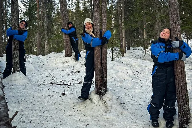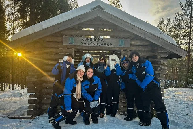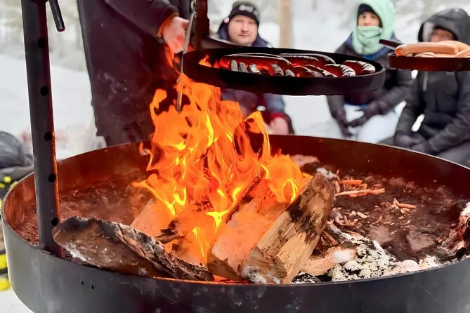 Your day includes hotel pickup and drop-off in Rovaniemi, all guiding fees, use of adult-sized winter overalls to keep you warm on the trail, a small group experience (never more than eight), plus a traditional barbecue lunch of grilled sausages cooked over an open fire with hot drinks before heading back through snowy Lapland woods.