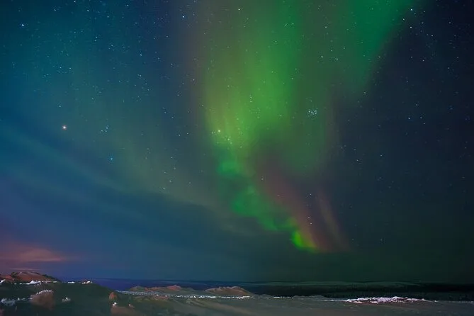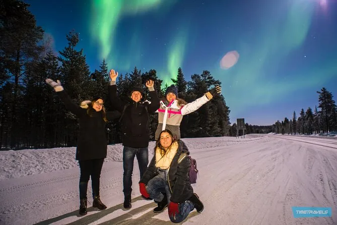 Your evening includes hotel pickup within 15 km of Saariselkä center, transport in a cozy minivan with an experienced local guide who shares stories and camera advice along the way; plus warm berry juice and snacks served during stops as you search for clear skies and glimpses of the Northern Lights before heading back to town.