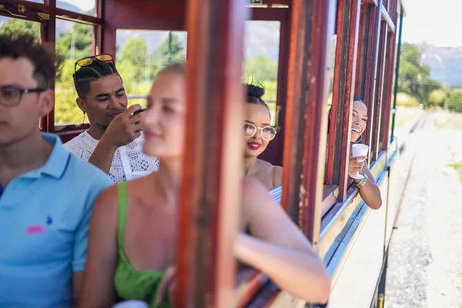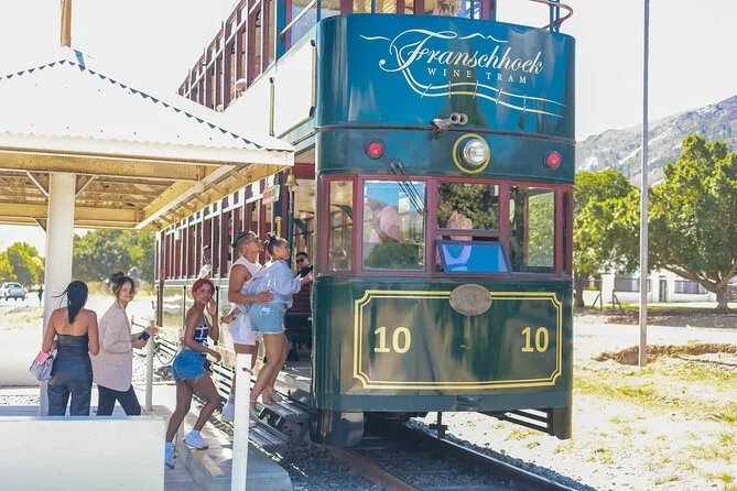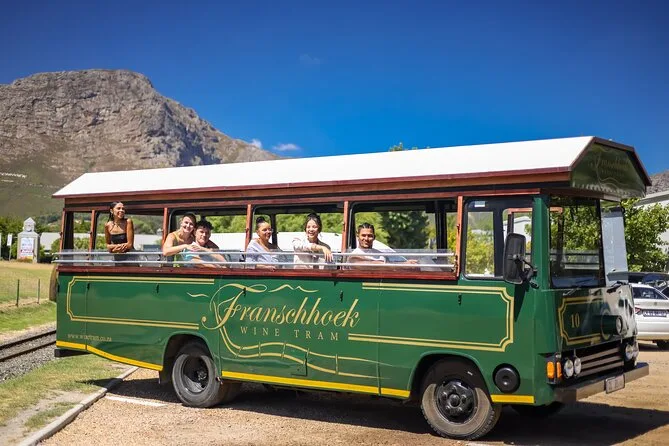 Vous visiterez deux domaines en tram — voire trois si le temps le permet — après le déjeuner à Franschhoek.