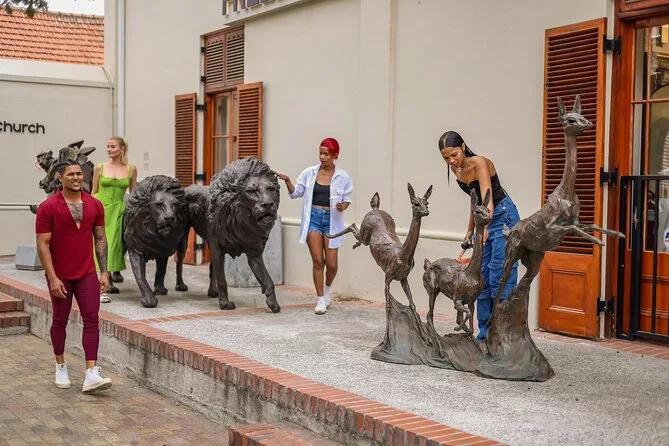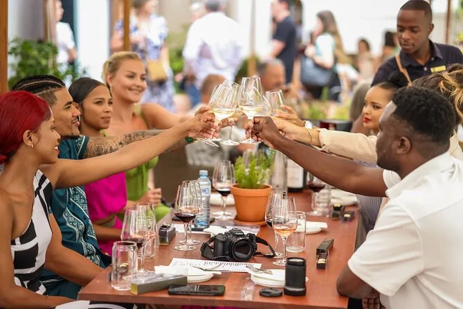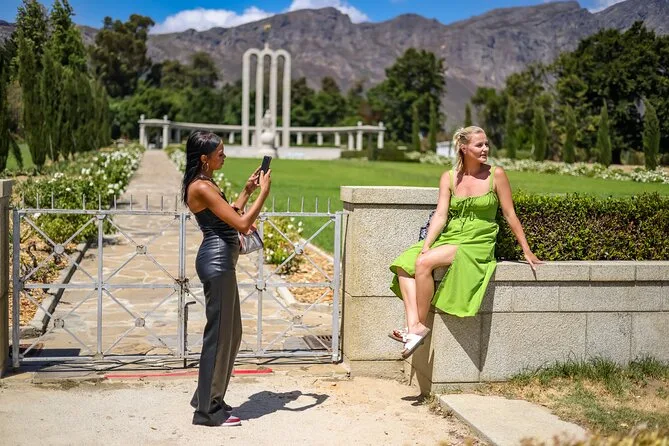 Vous arpenterez les rues ombragées de Stellenbosch, dégusterez vins et chocolats au domaine historique Lanzerac, monterez à bord du tram à vin de Franschhoek à travers des vignobles entourés de montagnes, et partagerez des histoires avec les locaux. Entre rires au déjeuner, moments de recueillement devant la statue de Mandela, et une dernière gorgée avant de rentrer, la journée est riche en émotions.