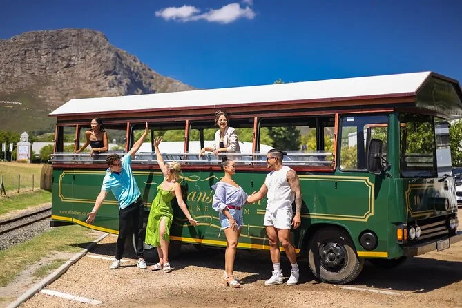 Votre journée comprend la prise en charge et le retour à l’hôtel au Cap dans un véhicule climatisé avec bouteilles d’eau à disposition ; des balades guidées à Stellenbosch ; des dégustations premium de vins accompagnés de chocolats artisanaux à Lanzerac ; d’autres dégustations à Tokara ; les billets pour deux arrêts sur le trajet du tram à vin de Franschhoek ; ainsi que du temps libre pour déjeuner et explorer les boutiques locales avant le retour.