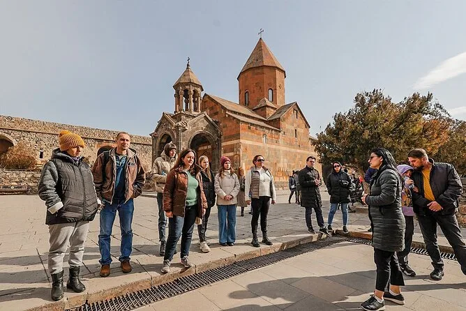 Votre journée comprend la prise en charge à votre hôtel à Erevan, un transport confortable avec WiFi à bord, les frais d’entrée pour tous les sites dont Khor Virap et la grotte d’Areni, une visite guidée avec un expert local sympathique, un déjeuner arménien traditionnel avec dégustation de vin dans le village d’Areni, ainsi que de l’eau en bouteille et des douceurs locales avant le retour à votre hôtel en soirée.