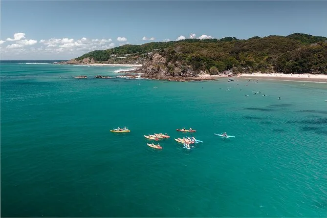 Le tour en kayak démarre à Clarke’s Beach, à Byron Bay.