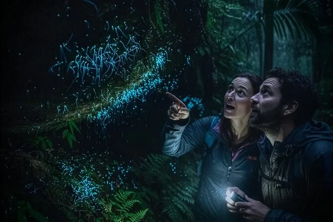 Le dîner était simple — des bols chauds remplis de légumes verts et de haricots — dégustés assis sur des troncs pendant que le ciel prenait cette teinte bleu profond juste avant la nuit complète. Puis est venue la partie inattendue : de la musique flottant entre les arbres (un des guides avait apporté un handpan). On a suivi des petites lampes torches jusqu’à l’endroit où vivent les vers luisants. Au début, on ne voit pas grand-chose… puis soudain, c’est comme si quelqu’un avait dispersé des étoiles sur les parois de boue. Le silence était total, à part le bruissement des feuilles au-dessus et un « wow » chuchoté derrière moi. J’ai essayé de prendre une photo, mais honnêtement, rien ne rend justice à ce spectacle.