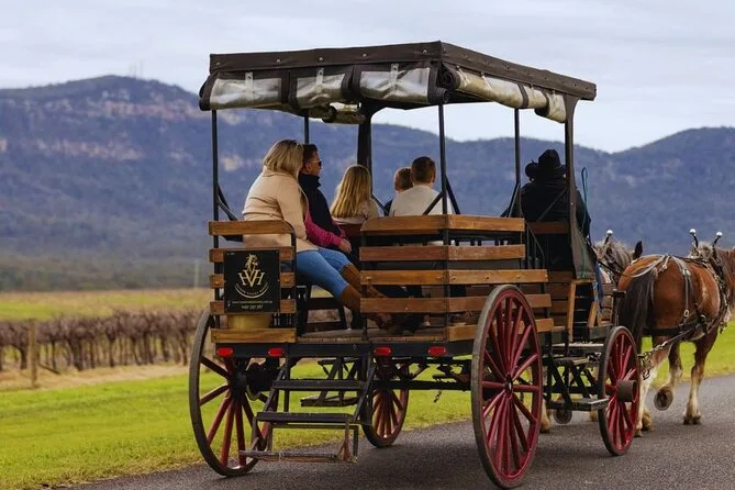 Votre journée comprend deux dégustations guidées dans des vignobles locaux, plus une pause pour goûter fromages et chocolats — le tout en calèche, avec un guide local chaleureux qui vous fait découvrir les paysages de Pokolbin.