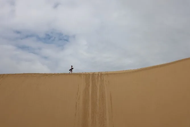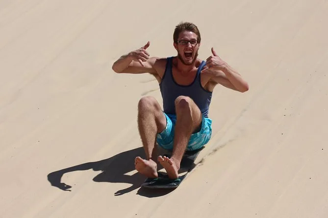 Votre journée comprend les transferts aller-retour en 4x4 vers les dunes de Stockton, l’utilisation illimitée d’une planche de sandboard avec instructions et encadrement par un guide local, les frais d’entrée couverts par la taxe des parcs nationaux, ainsi qu’une bouteille d’eau offerte pour vous rafraîchir entre les descentes avant de rentrer tranquillement.