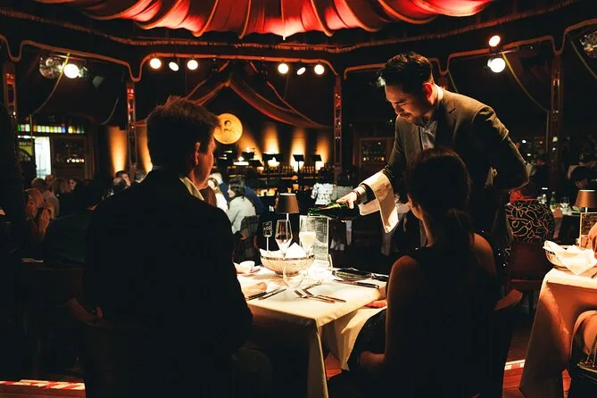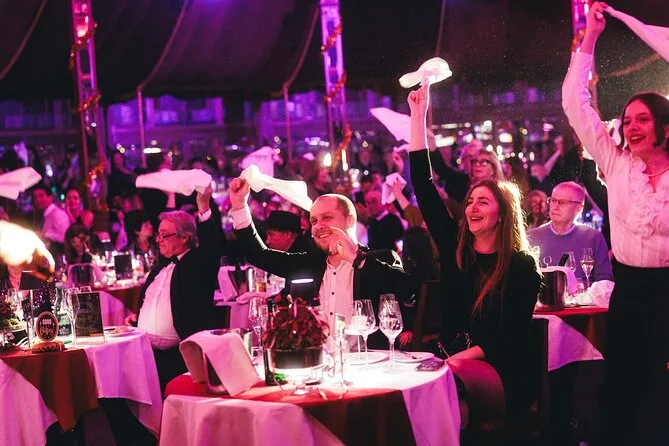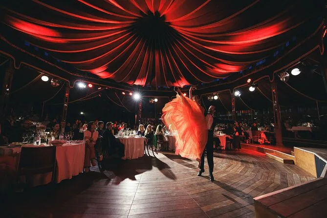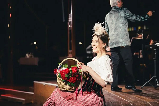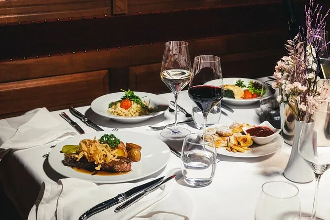 Votre soirée comprend les billets d’entrée pour la catégorie choisie au Mirage, dans le quartier du Prater à Vienne. Commencez avec du pain chaud et des tartinades, suivi d’un tartare de bœuf (ou option végétarienne), puis un plat principal d’oignons rôtis à l’ancienne avec pommes rôties, et terminez par un Kaiserschmarrn accompagné de sauce aux prunes — le tout en musique live avec orchestre complet, chanteurs et danseurs de ballet à proximité.