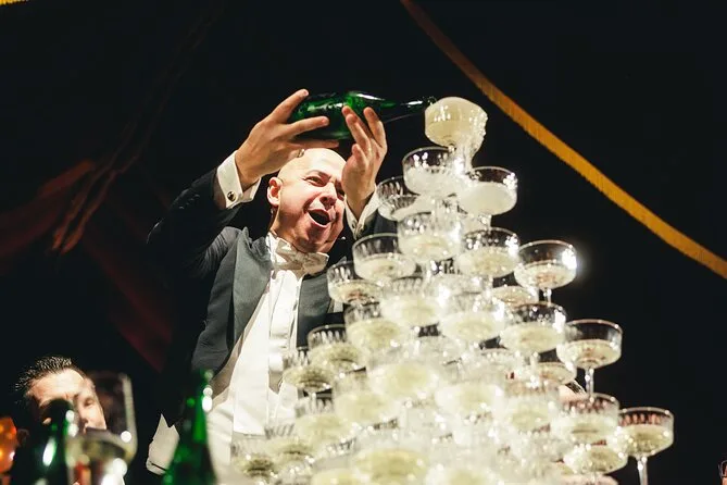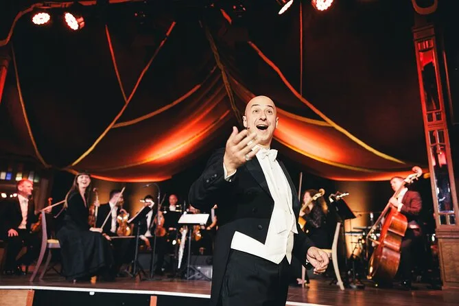 Installez-vous pour déguster des classiques viennois comme le Kaiserschmarrn, tandis qu’un orchestre de 20 musiciens joue en direct valses et polkas de Strauss. Rires garantis grâce aux anecdotes de votre guide, danseurs de ballet virevoltant près de votre table, et un menu avec options végétariennes, le tout dans un cadre intime au Prater. Une soirée vivante, chaleureuse, typiquement viennoise.