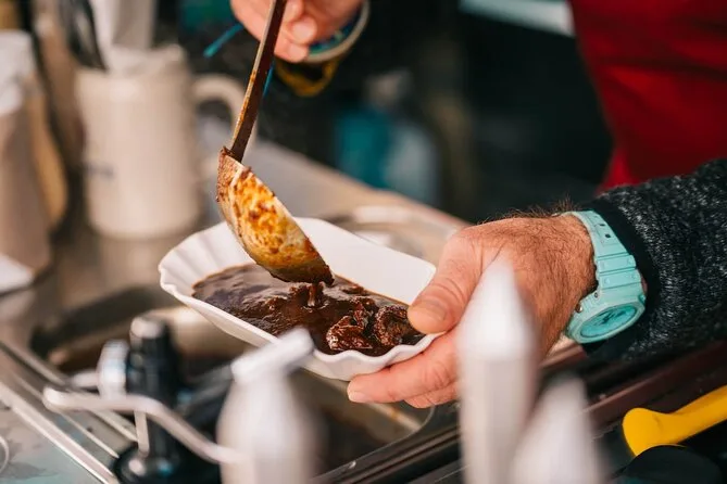 La durée exacte n’est pas précisée, mais comptez plusieurs heures avec plusieurs arrêts : pâtisserie, déjeuner, street food, dégustation de chocolat et pause café.