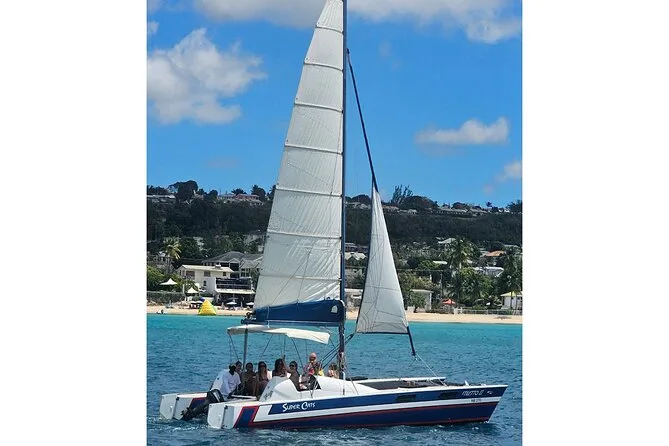Votre journée comprend une navigation le long de la côte ouest de la Barbade avec tout le matériel de snorkeling fourni, des arrêts à Carlisle Bay pour observer les tortues et peut-être les épaves, un bar ouvert tout au long de la journée (ne manquez pas le punch au rhum), un buffet Bajan complet au mouillage à Paynes Bay, ainsi que du banana bread le matin et du pain à la noix de coco plus tard — le tout avec une équipe locale expérimentée avant le retour au port.