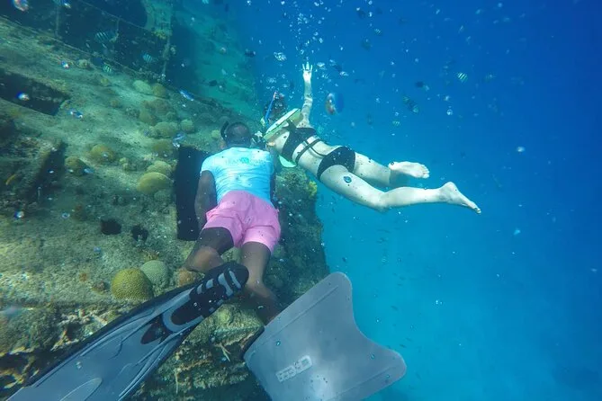 La dernière étape était Carlisle Bay pour notre balade en bateau avec Tranquility Cruises. L’eau était si claire qu’on voyait les ombres des tortues avant même de plonger. Faire du snorkeling au-dessus d’une épave, c’était étrange — silencieux à part notre respiration — puis soudain deux tortues sont passées comme si elles régnaient sur les lieux. Quelqu’un a crié quand une raie est passée dessous, mais l’ambiance restait paisible. On a fini en glissant sur le toboggan du bateau dans l’eau chaude (j’ai hésité, mais je l’ai fait). Je repense encore à ce moment — vous savez, ces petits instants qui restent gravés ?