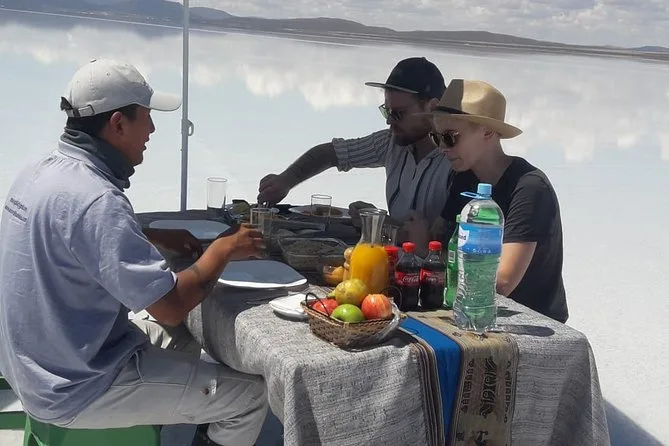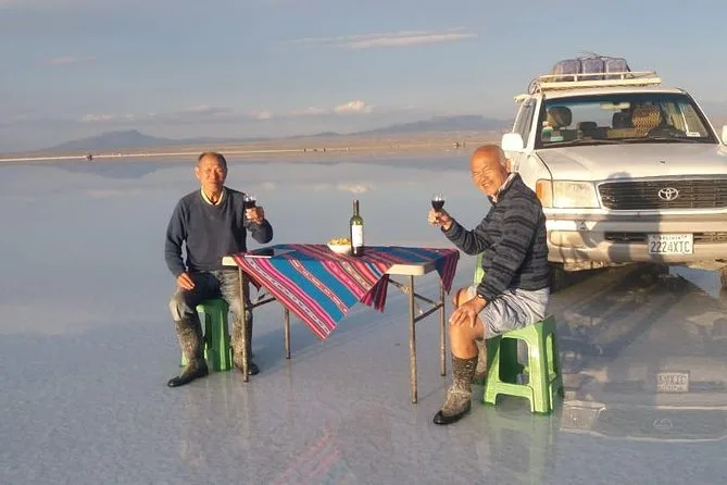 Votre expérience comprend les vols aller-retour entre La Paz et Uyuni, un transport privé pendant les deux jours avec un guide local anglophone et un chauffeur, les transferts hôtels/aéroports, une nuit à l’hôtel Tayka del Desierto (ou similaire), tous les repas — deux petits-déjeuners, deux déjeuners (parfois pique-niques), deux dîners — ainsi que l’entrée à tous les sites visités, dont l’île Incahuasi et la Laguna Colorada.
