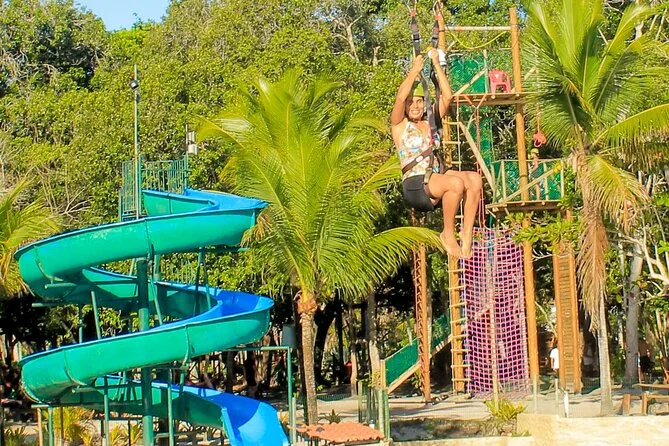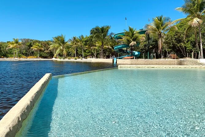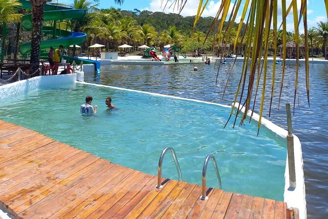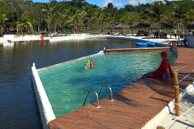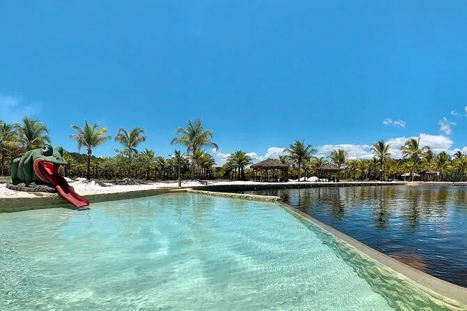 Votre journée comprend l’accès à toutes les activités principales : balade à cheval dans les sentiers forestiers, kayak ou glissade dans le lac, tyrolienne pour les plus audacieux, terrains de sport pour les fans de foot ou basket, aires de jeux avec toboggans et bassins de sable pour les enfants — sans oublier la pêche en catch-and-release et la balade en train panoramique pour les moments de flemme après le déjeuner. Toutes les activités sont incluses dans le prix du billet ; vous pourrez aussi profiter du restaurant en plein air qui marie barbecue uruguayen et saveurs bahianaises.