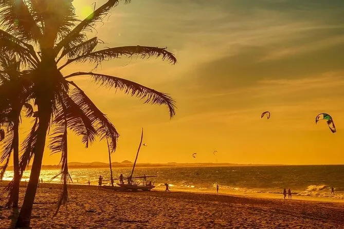 Commencez votre journée avec la prise en charge à l’hôtel pour rejoindre les plages lumineuses et les piscines animées de Cumbuco. Vivez l’adrénaline d’une balade en buggy (optionnelle), rafraîchissez-vous dans les lagunes d’eau douce, puis savourez des fruits de mer frais au bord de l’océan. Entre baignades et kitesurf, rentrez le cœur léger et les cheveux salés.
