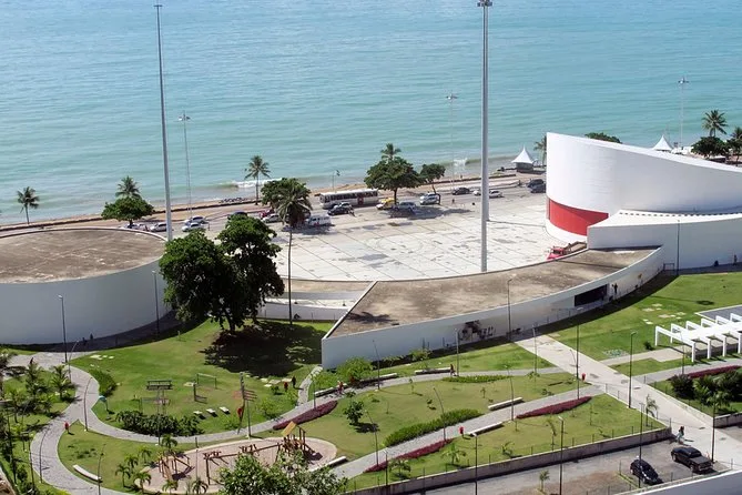 Ensuite, direction le parc Dona Lindu, un endroit qui m’a surpris. Ce n’est pas juste un coin de verdure : on y voit des skateurs s’éclater dans le bowl, unique en son genre dans cette région du Brésil, des familles promener leurs chiens, et parfois une odeur de pop-corn s’échappe d’un vendeur ambulant près de l’aire de jeux. Notre guide nous a montré le théâtre Luiz Mendonça – signé Oscar Niemeyer, d’où ces courbes audacieuses – puis nous avons jeté un œil rapide à la galerie Janete Costa pour admirer un peu d’art local.
