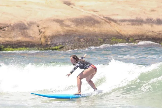 Votre cours inclut tout le matériel nécessaire comme la planche et le lycra fournis par Mandala Rio Surf School. Vous serez encadré par des guides locaux directement sur la plage d’Arpoador — venez juste prêt à vous mouiller et à vous amuser.