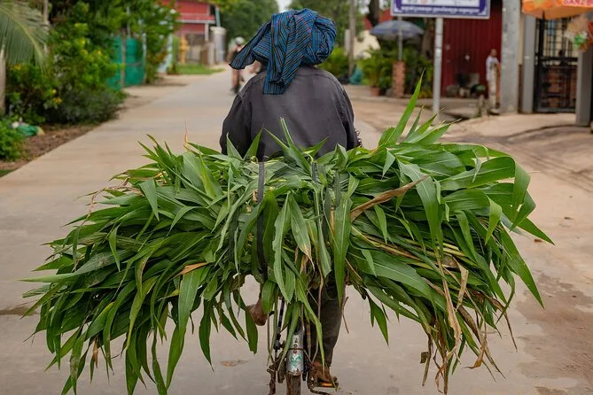 Vous visiterez des vergers, des plantations de citronnelle, des villages de tissage de nattes, des ateliers de soie, des pagodes bouddhistes et des maisons locales.