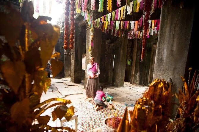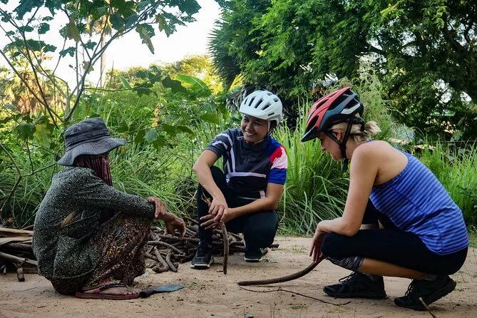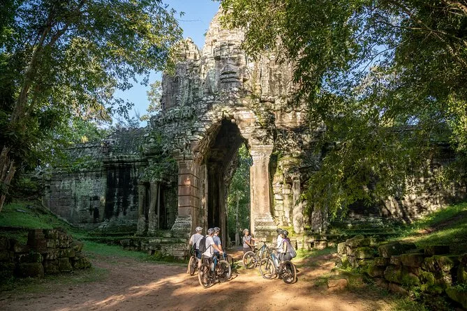 Vous pédalerez sur des sentiers calmes à travers les temples légendaires d’Angkor, guidé par un local qui vous racontera des histoires sous les banians centenaires et partagera avec vous des encas cambodgiens au bord du lac. Rires avec les vendeurs, déjeuner simple mais savoureux, et des instants suspendus au cœur des ruines envahies par la jungle.