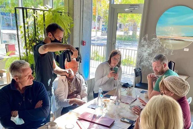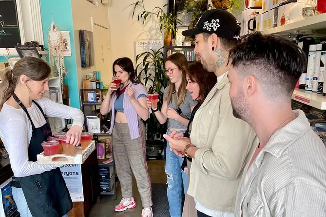 Votre journée comprend les sept dégustations et quatre pauses boissons — pain au levain frais chez Sprout bakery, cocktails sur une terrasse avec vue sur le centre-ville, pizza au feu de bois dans un four en forme de pomme, tacos inspirés des recettes familiales de Mexico, gelato maison au bord du lac Okanagan — et vous serez guidé par Andrew ou un autre local qui connaît tous les secrets et histoires du coin. Pas de surprise : tout ce que vous mangez ou buvez est inclus dans votre réservation.