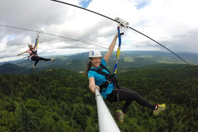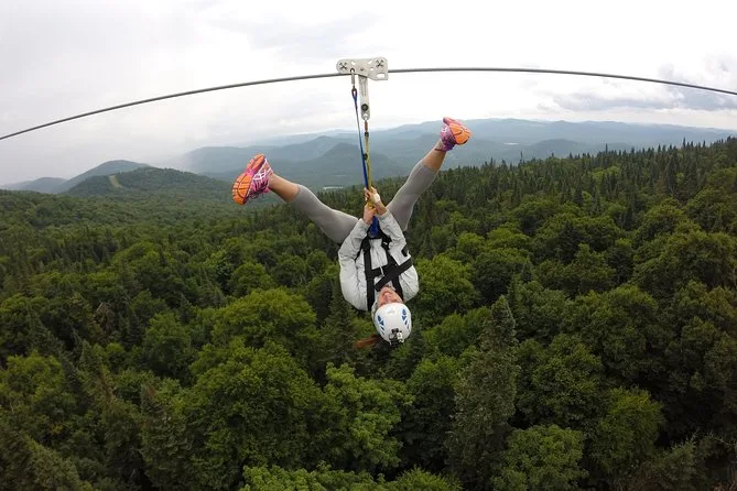 Votre journée comprend l’accès panoramique en télécabine jusqu’au sommet de Mont Tremblant, tout l’équipement nécessaire pour les tyroliennes (harnais sur mesure et casques), cinq tyroliennes guidées totalisant près de 4 km jusqu’au village, ainsi qu’un accompagnement chaleureux par un guide local professionnel tout au long de l’aventure.