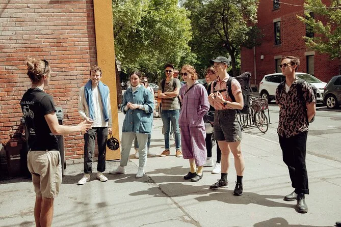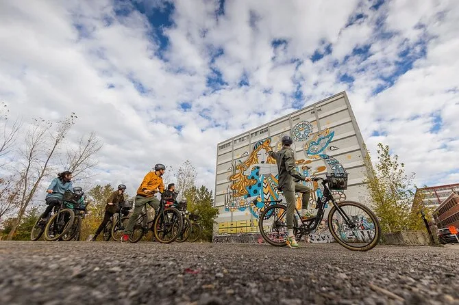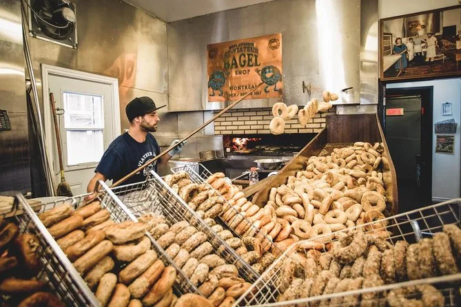 Votre journée comprend l’utilisation d’un vélo ou e-bike confortable (casque en option), un guide local expert qui connaît tous les raccourcis et histoires des fresques, une dégustation de bagels St-Viateur tout juste sortis du four à bois, toutes taxes incluses — et beaucoup de temps pour flâner au marché Jean-Talon avant de revenir au point de départ.