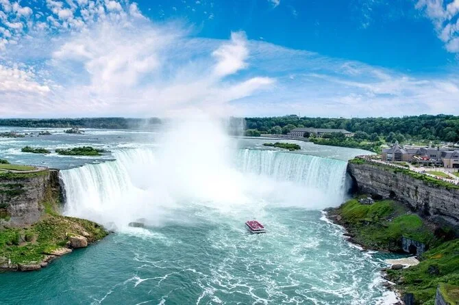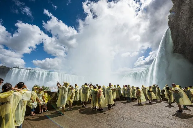 Préparez-vous à être trempé (dans le bon sens) lors de la croisière Niagara City Cruises jusqu’aux Horseshoe Falls, puis partez en balade guidée locale vers Rainbow Bridge avant de descendre dans les tunnels derrière les chutes—avec accès réservé et poncho inclus. Attendez-vous à des histoires, de la brume, le grondement de la roche sous vos pieds, et des souvenirs qui resteront longtemps.