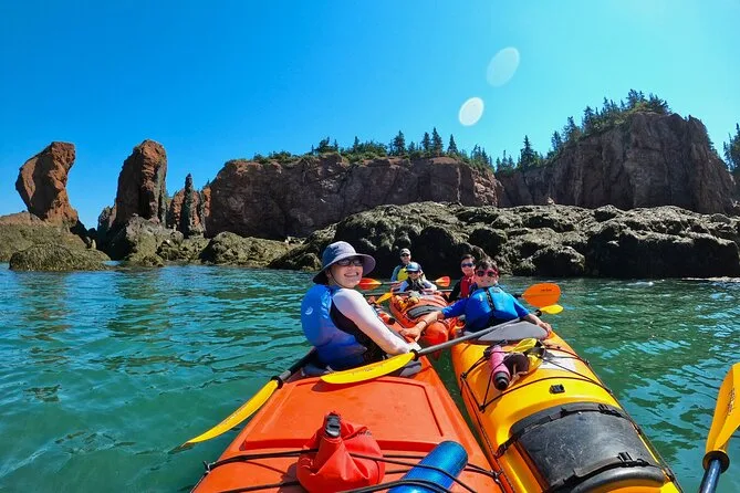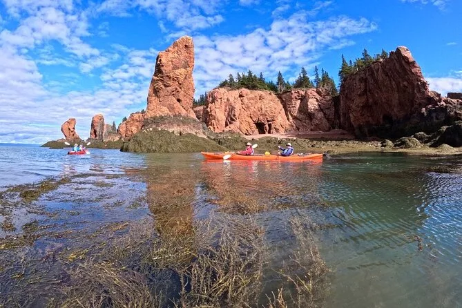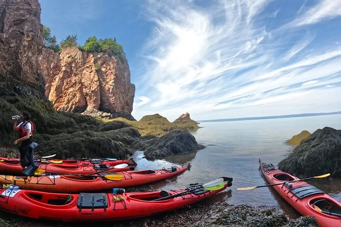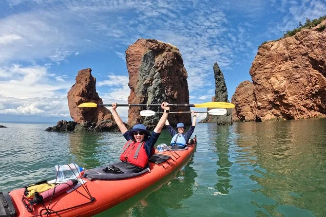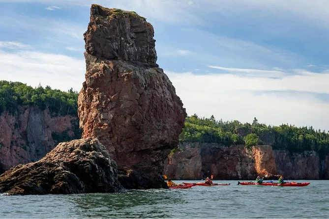 Pagayez le long des falaises rouges du cap Chignecto avec un guide local, contournez les impressionnantes Trois Sœurs (et criez dans leur amphithéâtre naturel), explorez d’anciens tubes de lave, puis savourez un pique-nique maison dans une crique secrète avant de revenir au rythme des marées.