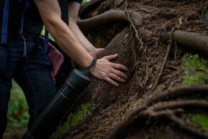 On a exploré plusieurs sentiers pendant environ trois heures (sans que ça paraisse long), découvrant d’énormes sapins de Douglas et un cèdre que Colin estime avoir plus de 1000 ans. Il avait avec lui de vieilles cartes et photos d’archives — qu’il comparait avec les arbres en face pour montrer ce qui avait changé ou pas. Je n’arrêtais pas de penser à tout ce que ces arbres ont vu passer ; ça m’a fait me sentir petit mais aussi chanceux d’être là maintenant, tu vois ? Je ne pensais pas repartir avec les chaussures boueuses et plein de nouvelles questions sur ce qui se trouvait ici avant.