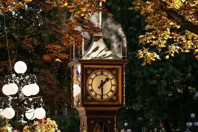 Je ne m’attendais pas à ce que Stanley Park soit aussi paisible après ça. Le bus nous a déposés près des totems de Brockton Point — neuf totems alignés dans une clairière, chacun sculpté de visages et d’animaux différents. Mark nous a raconté quelques légendes liées à ces totems (j’ai essayé de répéter un nom en squamish, il a ri doucement — « pas mal pour un début »). Le bois dégageait un parfum doux, presque comme du cèdre. Puis on a traversé le pont Lions Gate, avec des nuages bas au-dessus de l’eau, avant de revenir par Gastown. Là-bas, il y a cette vieille horloge à vapeur qui siffle toutes les heures ; on a attendu en groupe juste pour l’entendre, un moment vraiment satisfaisant.