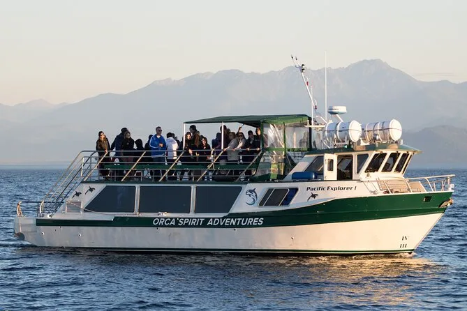 Votre journée comprend trois heures à bord d’un bateau couvert confortable au départ du port de Victoria, guidée par des biologistes marins certifiés pour explorer le détroit de Juan de Fuca. Profitez de boissons chaudes offertes, d’espaces intérieurs et de ponts panoramiques extérieurs ; des sanitaires complets sont accessibles tout au long de votre aventure d’observation avant le retour à terre.