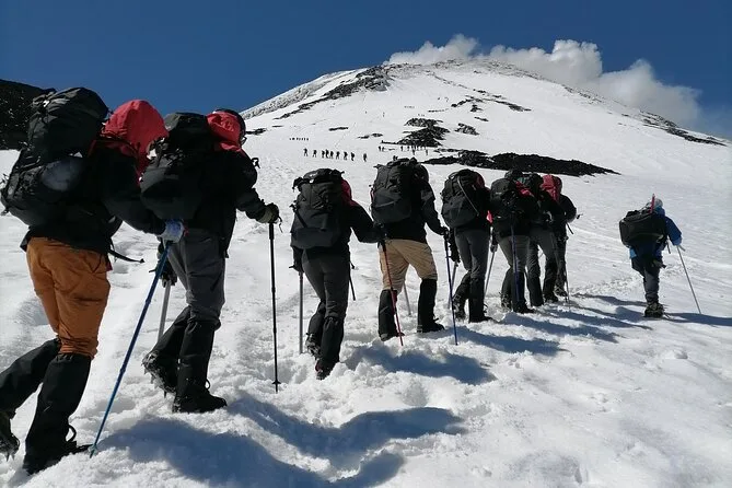 Votre journée comprend le transport privé de Pucón au volcan Villarrica avec des guides certifiés à chaque étape ; tout l’équipement de montagne : chaussures, crampons, casque et masque à gaz ; les frais d’entrée ; l’assurance accident ; ainsi que photos et vidéos prises en cours de route. Après l’ascension et la descente en luge (si les conditions le permettent), vous pourrez vous détendre autour d’une bière ou d’un soda avec des encas avant le retour.