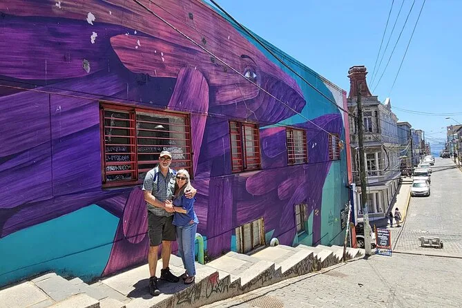 Votre journée comprend la prise en charge et le retour à l’hôtel à Santiago, ainsi que tous les transferts entre Viña del Mar, Valparaíso et la vallée de Casablanca. Vous profiterez d’un trajet sur les funiculaires historiques de Valparaíso, d’une visite guidée à pied dans ses collines artistiques, d’un temps libre pour déjeuner au restaurant de votre choix au port (avec les recommandations de votre guide), puis d’une dégustation de vins sélectionnés dans un vignoble de Casablanca avant de retourner à Santiago.