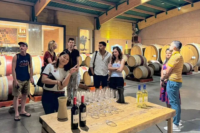 Vous dégusterez des vins typiques du climat frais de Casablanca, souvent du Sauvignon Blanc ou des blancs similaires, dans un vignoble local.