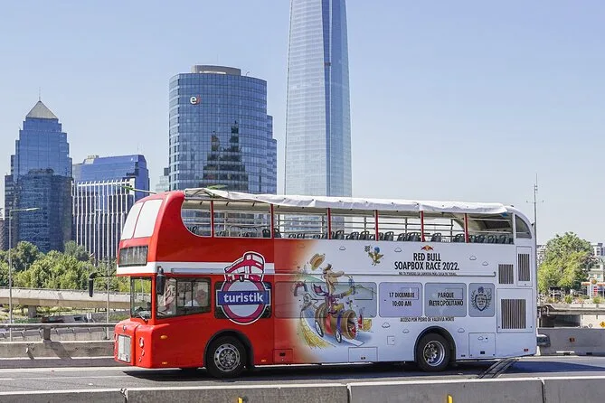 Votre journée comprend des trajets illimités en bus touristique hop-on hop-off à Santiago, ainsi qu’un accès complet au téléphérique et au funiculaire historique de la colline San Cristobal (du mardi au dimanche). Vous pouvez commencer à n’importe quel arrêt officiel comme Costanera Center ou le centre commercial Parque Arauco. Tous les billets d’entrée sont inclus ; pensez juste à prendre quelques pesos pour les snacks ou souvenirs en chemin.