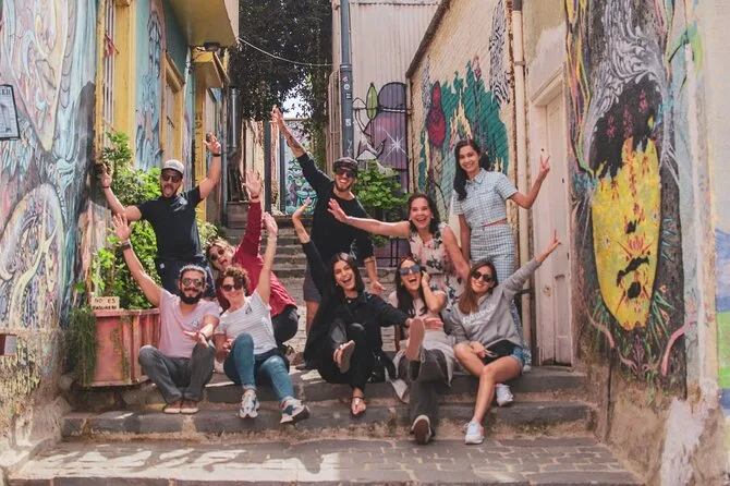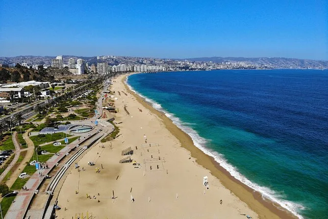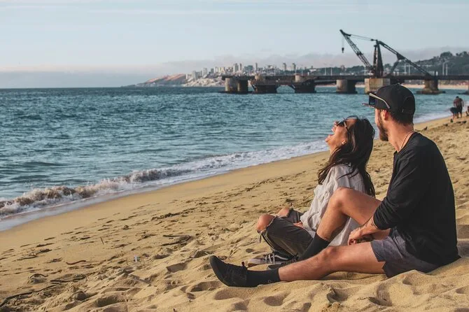 Votre journée comprend un transfert aller-retour exclusif depuis Santiago, des arrêts photos à Viña del Mar et Valparaíso, une visite guidée à pied avec un guide bilingue dans le centre historique et les quartiers de street art de Valparaíso, ainsi qu’un temps libre pour vous détendre ou déjeuner au bord de la mer avant le retour.