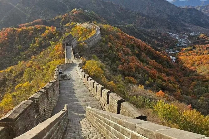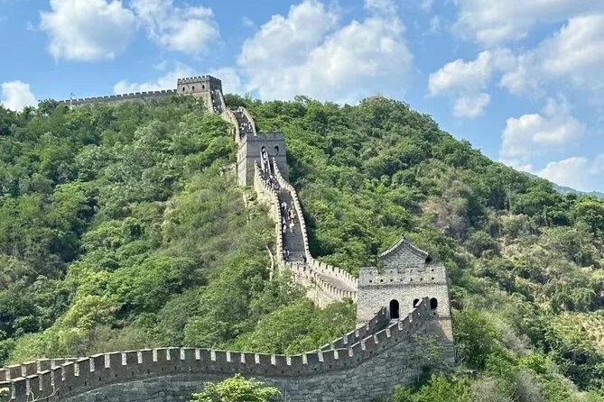 Votre excursion d’une journée à la Grande Muraille de Mutianyu depuis Pékin commence par un transfert hôtel avec chauffeur privé qui vous sort rapidement de la ville. Attendez-vous à explorer des sections plus calmes à votre rythme — grimpez les tours anciennes, respirez l’air de la montagne et écoutez les histoires si vous prenez un guide. Moins fréquenté que d’autres sites, vous pourrez enfin entendre vos pensées là-haut.