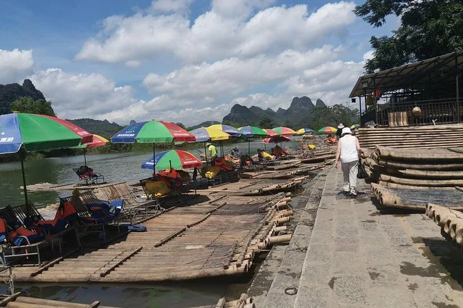 Vous gravirez Xianggong Mountain pour des vues sauvages sur les pics de Yangshuo, traverserez le vieux pont Yulong entouré de locaux, puis descendrez la rivière Yulong en bateau de bambou privé. Attendez-vous à des instants de calme : la brume sur le visage, des rires avec votre guide, des aperçus de la vie villageoise au bord de l’eau—cette excursion privilégie la lenteur et l’immersion.