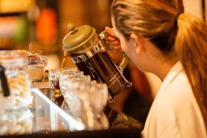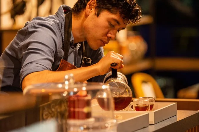 Votre journée comprend une dégustation guidée de café de spécialité avec des producteurs locaux à Bogotá, quatre cafés préparés selon différentes méthodes (AeroPress, V60, French Press, siphon japonais), une empanada fraîche à savourer pendant la session, ainsi que les histoires derrière chaque tasse — le tout dans un lieu accessible à tous.