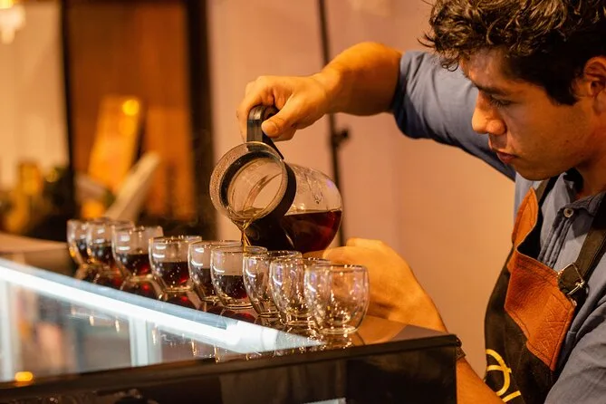 Rejoignez des producteurs locaux à Bogotá pour une dégustation de café de spécialité bien au-delà de la tasse classique — quatre méthodes d’infusion, découverte des origines et de leurs saveurs, rires autour d’empanadas fraîches, et nouvelles façons de décrire ce que vous goûtez. Une expérience qui vous marquera à chaque odeur de bon café.