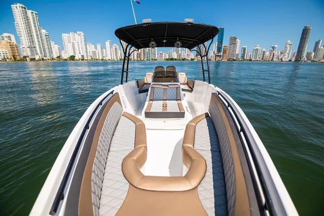 Partez de Cartagena pour une journée en bateau privé avec capitaine et guide. Nagez près des îles Rosario ou plongez dans l’ambiance festive de Cholon — c’est vous qui choisissez. Profitez de la musique sur des enceintes haut de gamme, détendez-vous sur des sièges en cuir ou un bain de soleil, rafraîchissez-vous avec une douche d’eau douce et gardez vos boissons au frais grâce à la glace. Une chaleur unique que vous n’oublierez pas de sitôt.