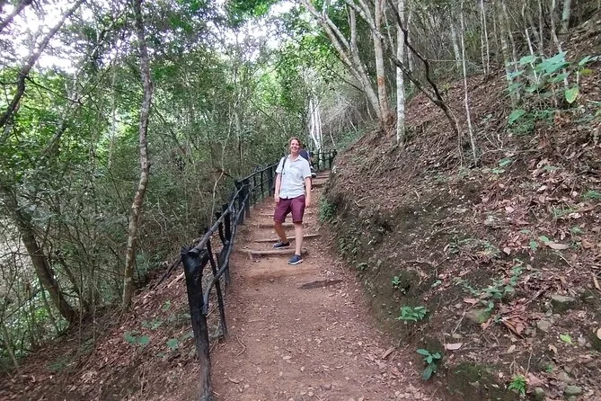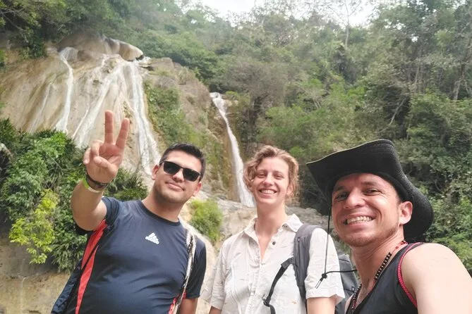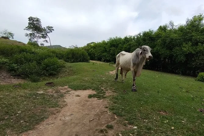 Notre guide, Andrés, a montré un sentier étroit bordé de fleurs sauvages et a expliqué que cette région est célèbre pour ses papillons — il ne plaisantait pas. Nous avons aperçu des papillons bleu vif virevoltant autour de nous et croisé quelques vaches paisiblement en train de brouter sous des arbres. La descente vers les cascades de Chicala a duré environ 20 minutes, mais c’était une petite aventure en soi. Prévoyez de bonnes chaussures ; certains passages deviennent boueux après la pluie.